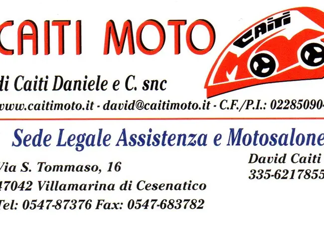 Caiti Moto è gestito dal papà Daniele e dal figlio David cell. 335-6217855 david@caitimoto.it in maniera egregia. Caiti Moto è Concessionaria Kymco http://www.kymco.it, Royal Enfield http://www.royalenfielditalia.net/moto.html, Fantic Motor http://www.fanticmotor.it e Mash http://www.mash-italia.it/moto . La Concessionaria Caiti Moto offre anche assistenza meccanica e vende accessori.